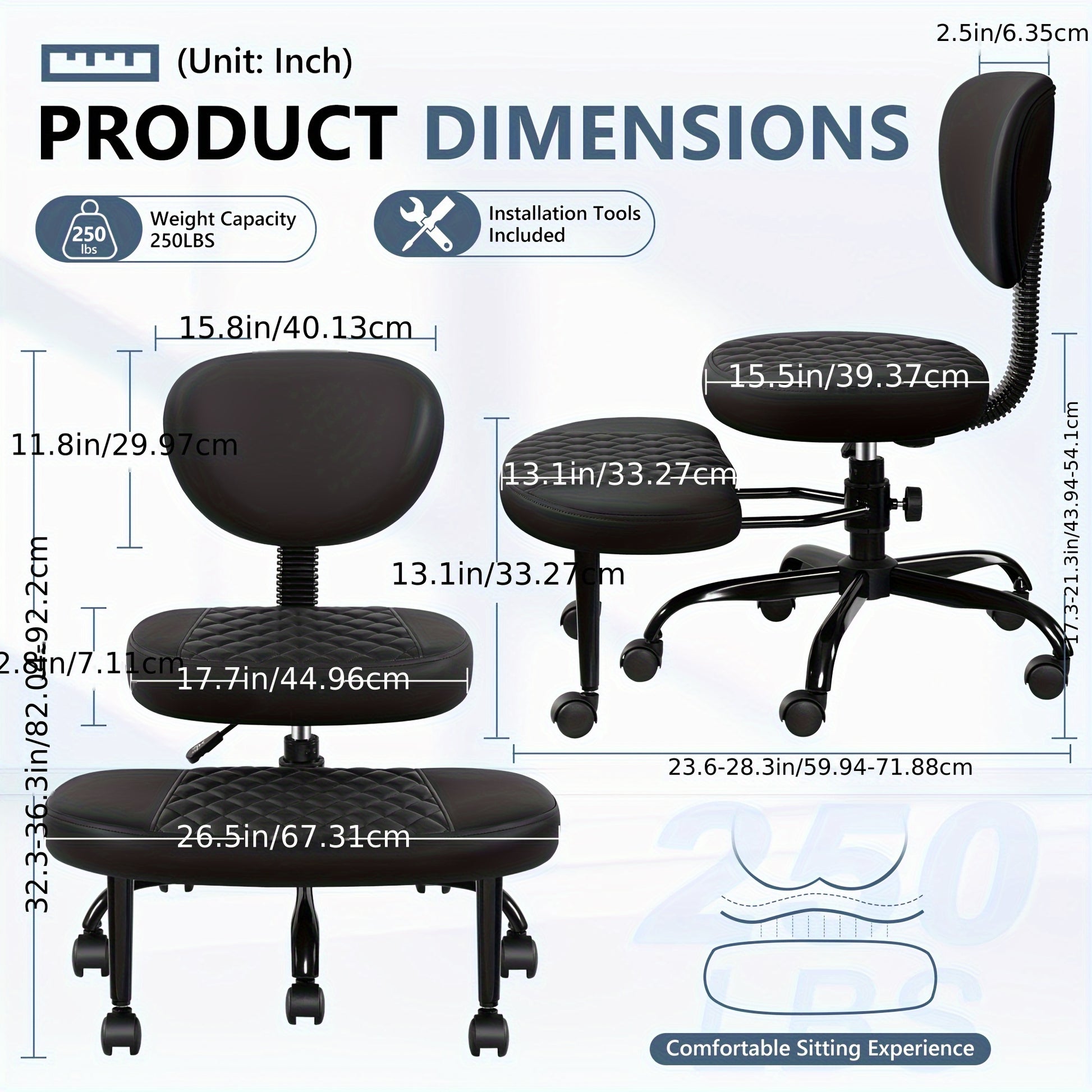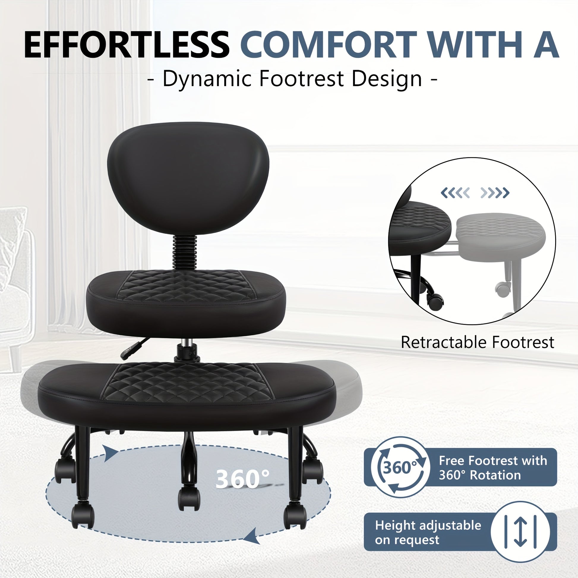 Ergonomic Cross-Legged Chair Kerdom Ergonomic Adjustable Height Cross-Legged Chair | 360° Swivel & 5-Wheel Rolling Base, Soft Padded Comfort for Home Office,