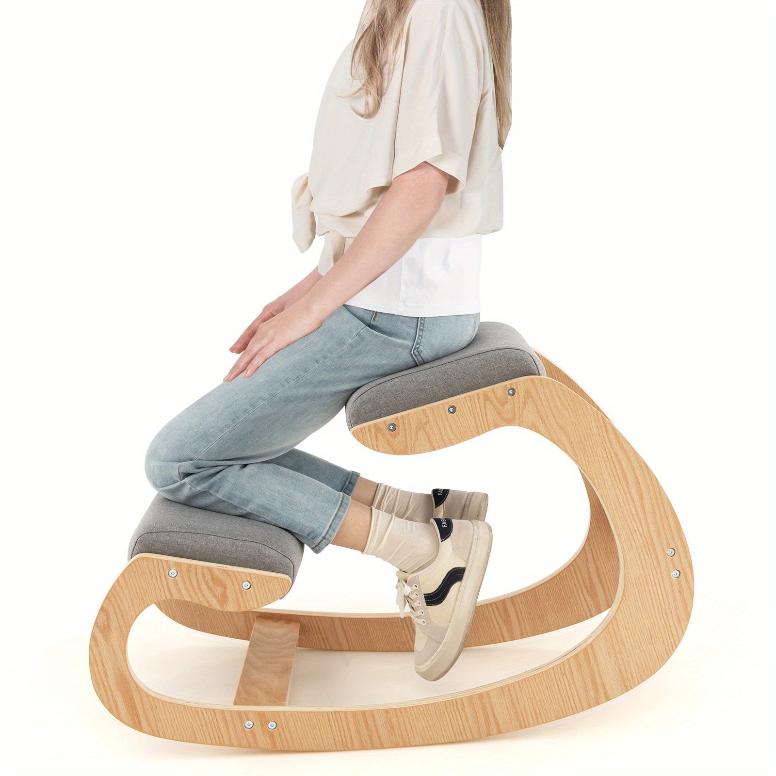 MAXMASS Ergonomic Kneeling Chair - Solid Wood Rocking Posture Stool with High-Density Sponge & Breathable Polyester Fabric, 330 lbs Capacity, Grey - Improves Posture,
