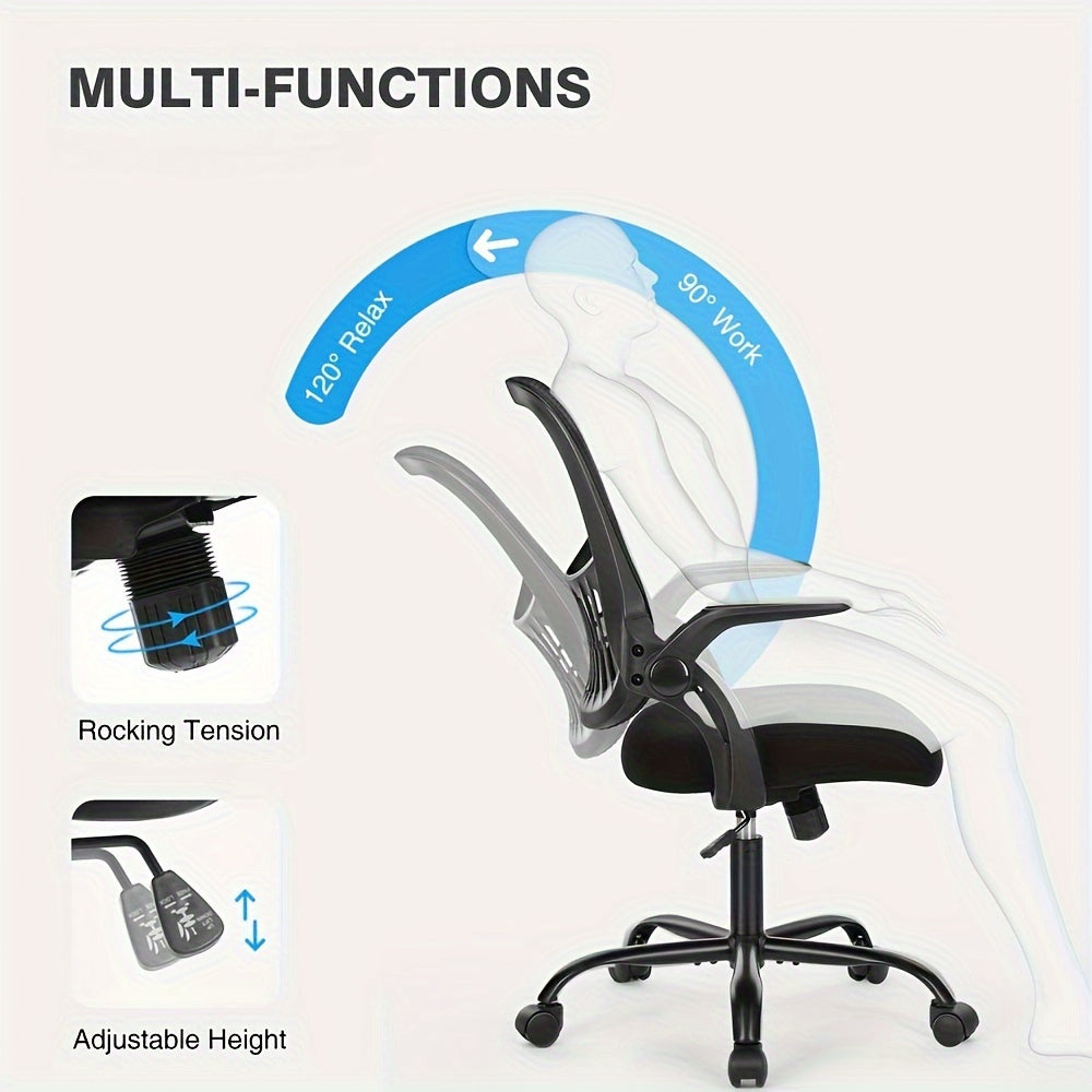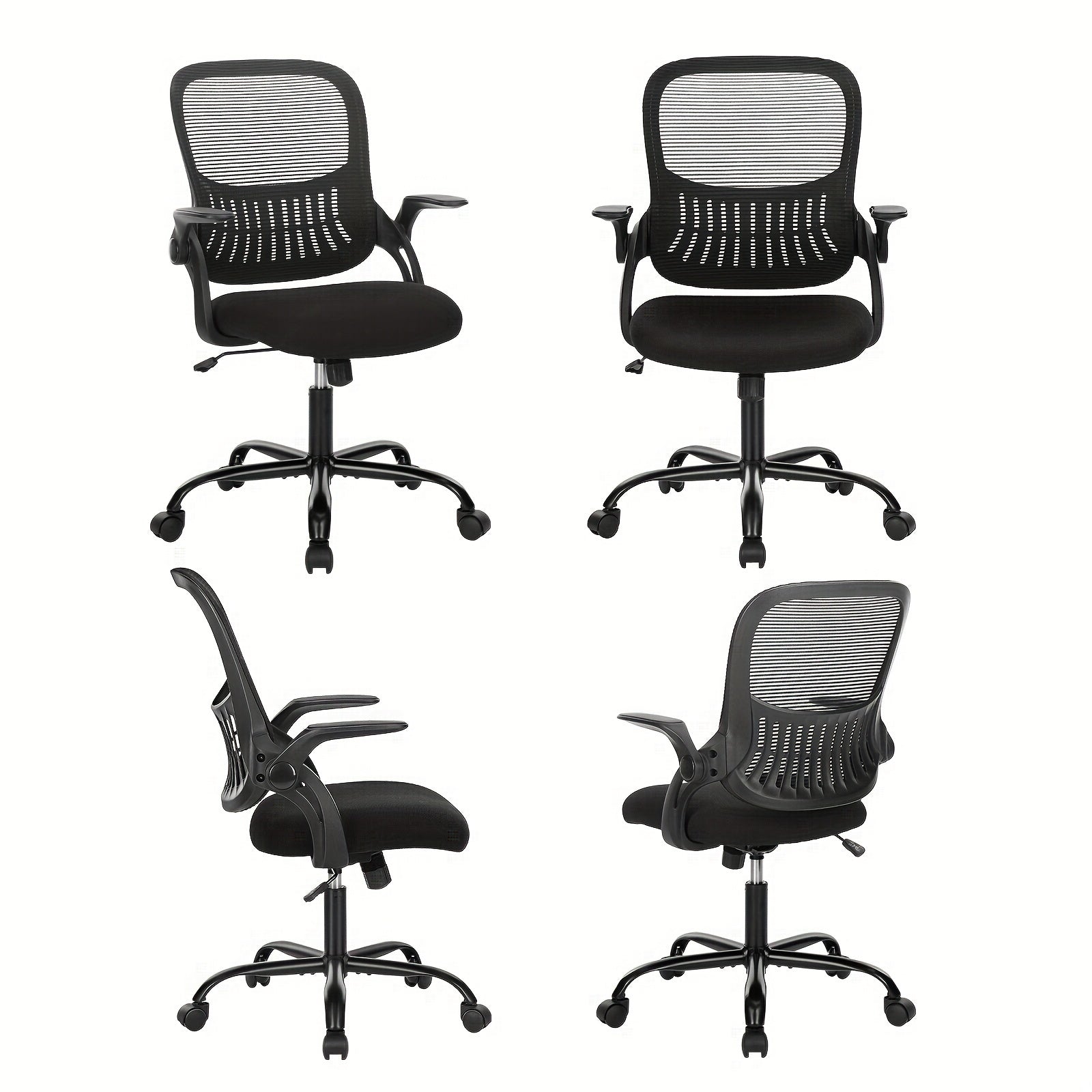 Office Computer Desk Chair, Ergonomic Mid-Back Mesh Rolling Work Swivel Task Chairs with Comfortable Lumbar Support, Wheels, Comfy Flip-up Arms for Home,