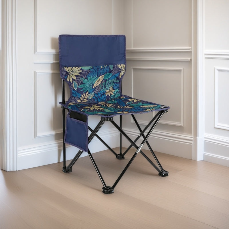 Portable Folding Camping Chair with Floral Backrest & Side Pockets - Lightweight Steel Frame, Durable Oxford Fabric, Compact Foldable Design for Outdoor Fishing,