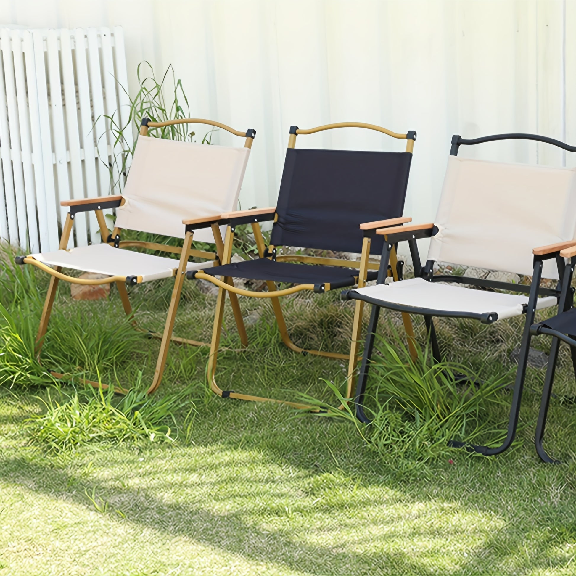 Portable Folding Chair - Lightweight And Durable, Suitable for Camping, Picnics And Outdoor Relaxation, Beige Fabric Seat with Black Metal Frame, Fishing Chair,